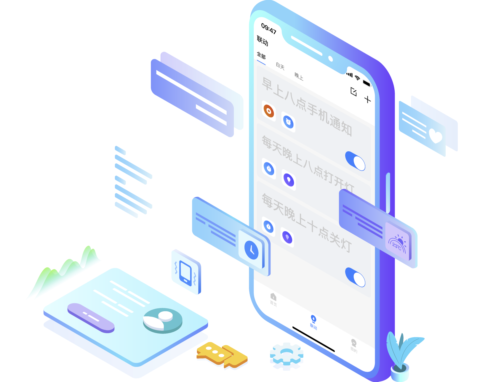 你已经习惯按时间计划自己的工作与生活,设备同样可以参与到你的时间安排中,按计划准确执行后还能将结果通过倍联APP通知到你。