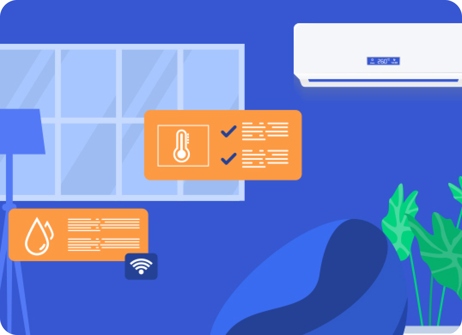 使用433s通信技术,无需改/拆装空调即可将分体式空调统一集成到平台,通过温湿度传感器和人体感应探测器,实现自动调节温度、无人关空调等功能,优化空调使用效果,更好地控制能源消耗。